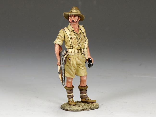 Soldato australiano con binocolo e Tommy Gun